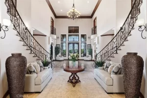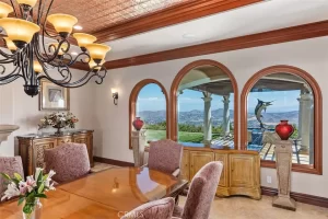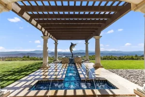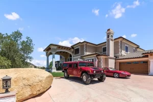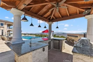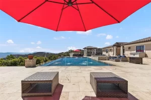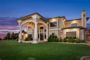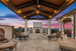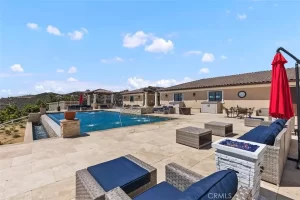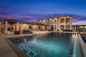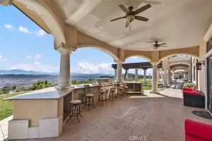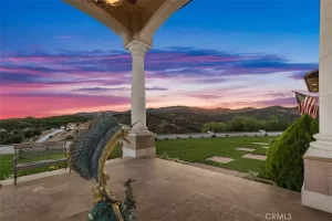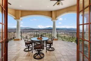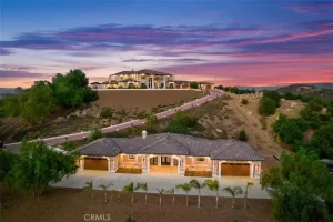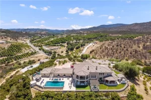 Welcome to Villa Dolce Vista. Commandingly positioned atop 20.39 ACRES at the north point of the EQUESTRIAN COMMUNITY of La Cresta, this Italian inspired masterpiece offers luxury amenities appreciated by the most discerning buyers. Impressive private GATED COMPOUND offers uninterrupted panoramic VIEWS of mountains, city lights, and the Temecula Valley. Encompassing nearly 14,000 SF, the resplendent home includes 5 EN-SUITE BEDROOMS, 8 BATHROOMS, a grand foyer with DUAL STAIRCASES and 24’ ceiling, elegant wood paneled STUDY, FORMAL DINING ROOM with fireplace and expansive city light view. Incredible CHEF’S KITCHEN includes a 20’ granite topped island, COPPER CEILING and LEDGER STONE WALLS. Extraordinary PRIMARY SUITE offers a FIREPLACE, BALCONY with staggering city light views, OPPULANT BATH with dual water closets, vanity areas, marble spa showers, and Jacuzzi tub. Massive GAME ROOM with full wet bar and access to the outdoor travertine deck with FOUNTAINS, INFINITY EDGE JEWEL SCAPE POOL AND SPA and two full outdoor BBQ kitchens. EIGHT CAR GARAGE with built in cabinetry. This SMART HOME is equipped with $155,000 in electronics that provides you with touch screen devices throughout the home. For extended family, a 1,777 SF SINGLE STORY 2 BEDROOM, 2 BATH BUNGALOW with two- 2 car attached garages. Energy efficient with a 47 KW 136 PANEL SOLAR SYSTEM powering both the main home and casita. 53’x40’ RV GARAGE totaling 2,120 SF for storage of two 45’ motorhomes plus all the toys. INCOME PRODUCING HAAS AVOCADO GROVE with automatic fertilization system and WELL watered with two 5000 gallon holding tanks. Additional building pad for future barn, tennis court or helipad. The La Cresta community is located mid-way between Orange County and San Diego County with convenient access to Ontario, San Diego, and John Wayne International Airport. This stunning estate is just minutes from the members only Bear Creek Golf Club offering a Jack Nicklaus designed golf course, tennis, and fine dining as well as the growing Temecula wine country.